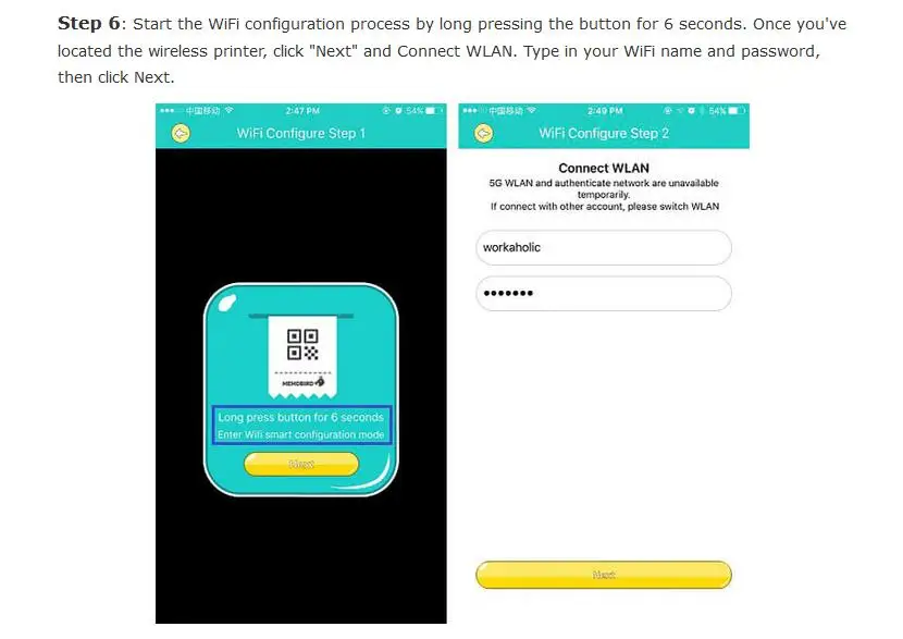 Step 2: Follow the prompts of the paper note, then connect with the WIFI of this printer.